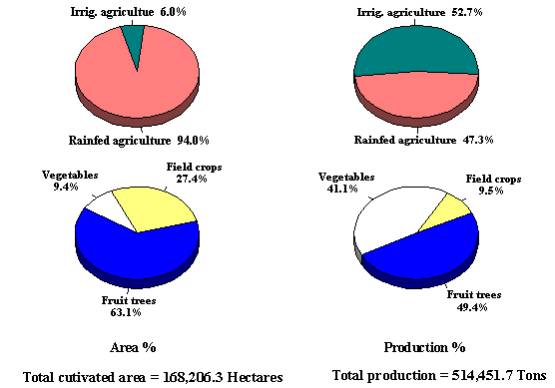 Crop exports totaled 3,784,235 tonnes. The overwhelming proportion of each crop was exported with the exception of figs and cucumbers, which were mainly consumed in the domestic market. Details of crop production and exports are shown in Table 9 below.